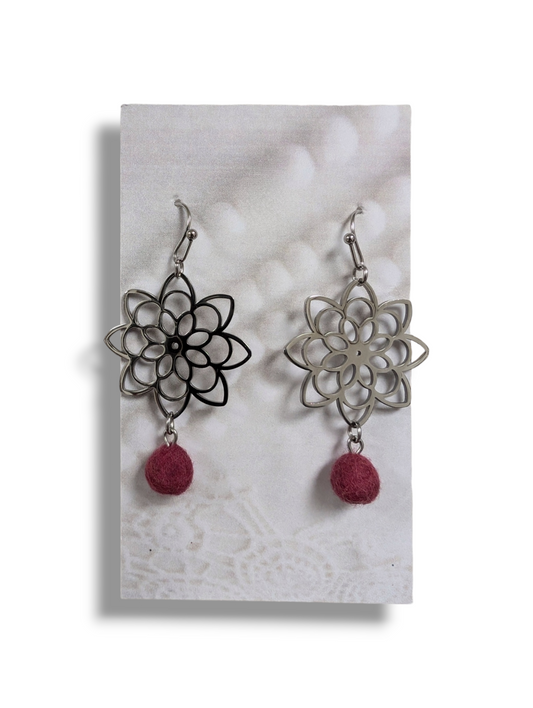 Boucles d'oreilles fleurs feutrées